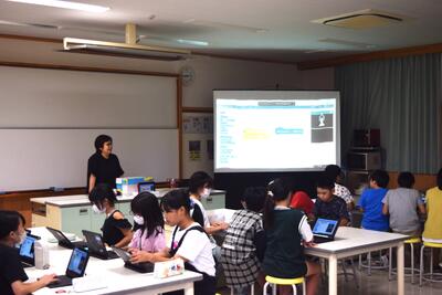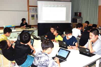 子どもたちは、難易度の異なるプログラミングに挑戦し、とても意欲的に取り組むことができました。何人かの子どもたちは、プログラミングコンテストにチャレンジする予定とのことです。
