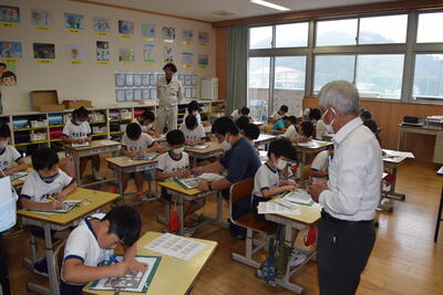9月15日(金)に、4年生を対象に「防災教育」が行われました。講師は、町役場から建設課(佐藤憲治さん)と総務課(矢津田一馬さん)がいらしてくださいました。
