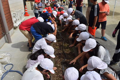 グリーンタイムで、学級園の枯れた花抜きをしました。