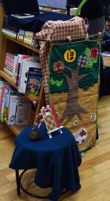いつもの読み聞かせは教室ですが、お話会は「本のもり(図書室)」で、えほん畑さん方が楽しい設営をしています。