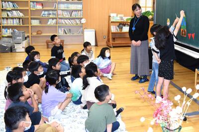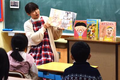 その一つの取組として、お話ランドがあります。お話ランドは、職員による読み聞かせで、担任以外の職員が読み聞かせをします。「今年は誰が来るのか。」「どんな本を読んでくれるのか。」と、子どもたちは毎年楽しみにしています。職員も、選書から張り切って取り組んでいます。