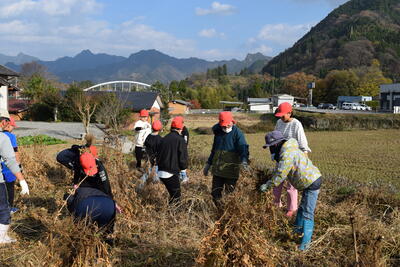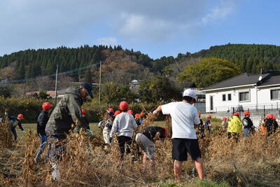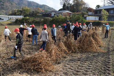 令和5年11月28日(火)に、5年生が大豆の収穫を行いました。