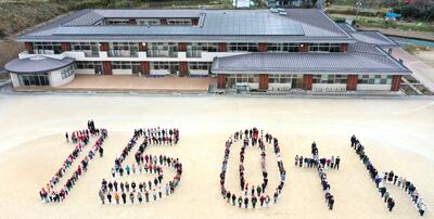 最後は、運動場に出て、ドローンで記念写真を撮りました。