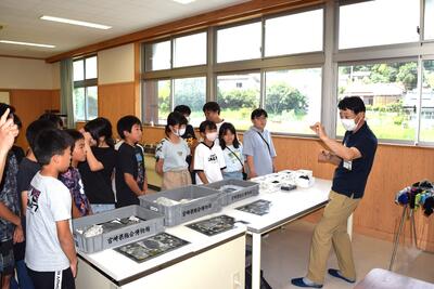 子どもたちは、高千穂小学校の敷地も遺跡として指定されていることや、高千穂町内の遺跡の数の多さに驚いていました。