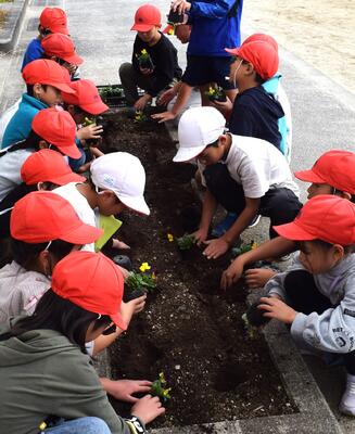 前回(11月21日)のグリーンタイムでは、春の花壇の準備として、夏から秋にかけて学校を彩ってくれた花を抜きました。