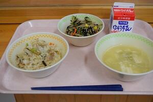 千切り大根の混ぜごはん・牛乳・みそ汁・ひじきとごぼうのサラダ