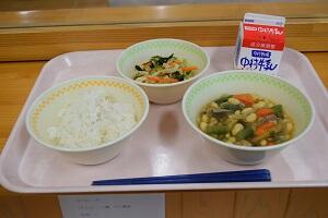 奄美の鶏飯・牛乳・厚揚げの甘辛炒め