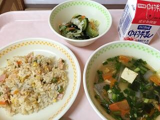 チャーハン 牛乳 キムチスープ 海藻サラダ
