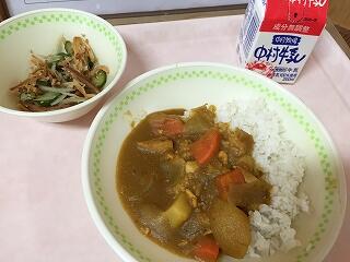 今日は、4年生のリクエスト献立です。4年生は松組 29名、竹組 28名 合計57名です。給食を残さず食べ、元気ハツラツです。そんな4年生のリクエスト献立は、お肉や人参、たまねぎ、じゃがいもがゴロゴロ入った「カレー」でした