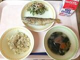 麦ごはん 牛乳 野菜スープ さばのトマト煮 にんじんとあさりのサラダ