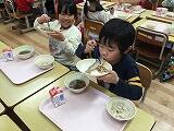 茶飯 牛乳 きび団子汁 ヤマメの唐揚げ もやしの酢の物