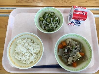 麦ごはん、牛乳、筑前煮、きゅうりとちりめんの酢のもの