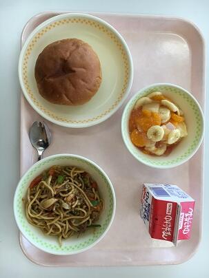 黒糖パン、牛乳、焼きそば、アセロラジュレフルーツ