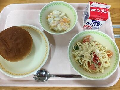 紅芋パン、牛乳、サマースパゲティ、ヨーグルトあえ