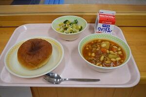 黒糖パン・牛乳・ポークビーンズ・ツナサラダ