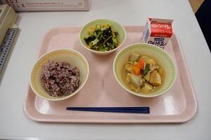 十二穀ごはん・牛乳・鶏肉と里芋のみそ煮・和風サラダ
