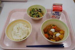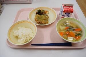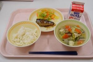麦ごはん・牛乳・魚のからあげ・きゃべつのごまずあえ・みそけんちん汁