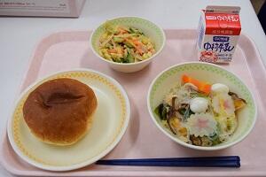 ミルクパン・牛乳・肉うどん・カリフラワーのサラダ