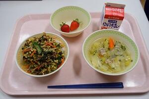 韓国風ちらし寿司・牛乳・いわしのつみれ汁・からしあえ