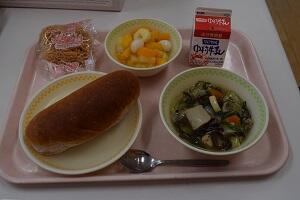 紅芋パン・牛乳・長崎皿うどん・フルーツ白玉