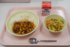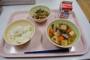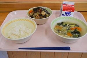 麦ごはん・牛乳・煮しめ・野菜のそぼろ煮