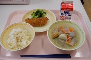 麦ごはん・牛乳・さけ磯の香チーズフライ・ブロッコリー・豚汁