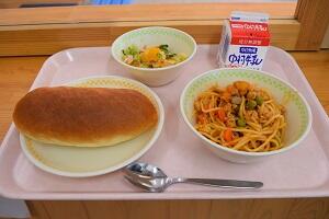 ミルクパン・牛乳・ミートスパゲッティ・フレンチサラダ