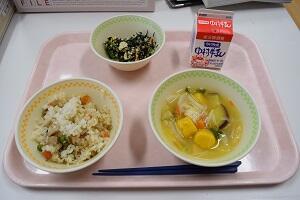 とりめし・牛乳・かねんしゅい・ひじきの白あえ