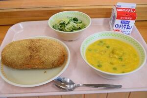 揚げパン・牛乳・パンプキンシチュー・グリーンサラダ