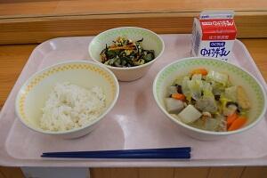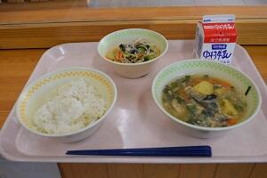 麦ごはん・牛乳・さばゆずみそ煮・こんぶあえ・のっぺい汁