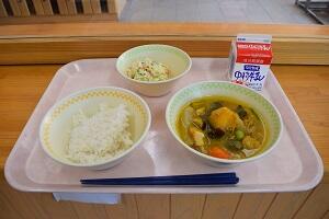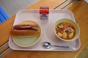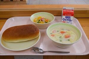 ミルクパン・牛乳・マカロニシチュー・フレンチサラダ