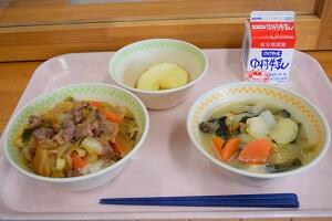麦ごはん・牛乳・豚肉のしょうが炒め・みぞれ汁