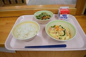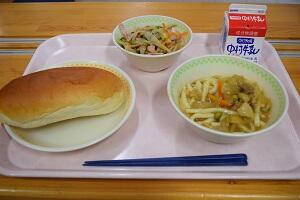 ミルクパン、カレーうどん、ごぼうサラダ、牛乳