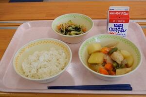 麦ごはん・牛乳・新じゃがの煮物・おかかあえ
