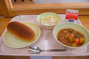 ミルクパン・牛乳・ビーフシチュー・フルーツヨーグルト