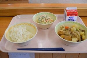 麦ごはん・牛乳・じゃがいものそぼろ煮・おからサラダ