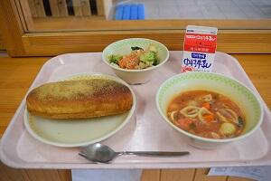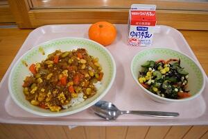ドライカレー、ひじきとチーズのサラダ、みかん、牛乳