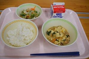 麦ごはん、マーボーどうふ、いかともやしのナムル、牛乳