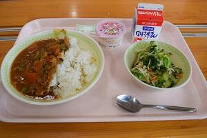 ハヤシライス・日向夏ドレッシングサラダ・デザート・牛乳