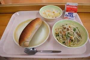ミルクパン、スパゲッティミートソース、フレンチサラダ、牛乳