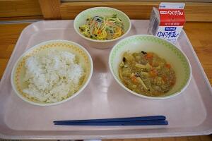 ごまパン、カレーうどん、海藻サラダ、牛乳