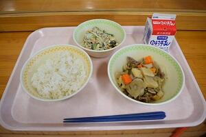 麦ごはん、豆腐のすまし汁、チキン南蛮、ボイルブロッコリー、牛乳
