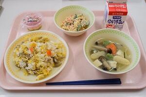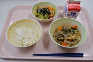 ごもくずし・牛乳・すまし汁・千切り大根のオーロラサラダ・デザート