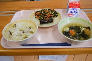 高菜めし、吉野汁、いかと大根のマリネ、牛乳
