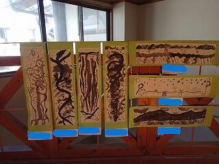 校舎2階のろうかに3年生以上の新しい作品が掲示されています。3・4年生は版画です。3年生はカッター、4年生は彫刻刀を使った版画で色づけまでよく頑張っていました。5・6年生は墨の濃淡を生かした水墨画を描きました。2月14日(土)の参観日の時に、じっくりご覧ください。