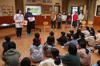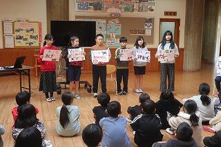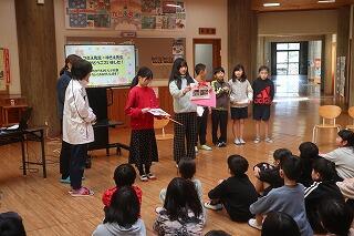 1月23日(金)に給食感謝集会を行いました。この日に向けて子どもたちは食材を運んでくださる方、献立を考えてくださる栄養教諭など給食に関係する方々にお礼の手紙を書いていました。この日は、まず給食主任の先生から給食の歴史や給食に感謝の気持ちをもつことの大切さなどの話を聞きました。次に、毎日おいしい給食を作ってくださる調理員の先生にお手紙を渡したり、インタビューをしたりしました。感謝の気持ちが伝わる会になるように、保健体育委員会の子どもたちは事前の準備や練習も頑張っていました。