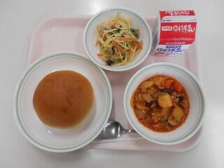 秋味カレーライス、牛乳