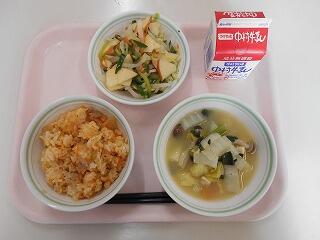 いりこ菜めし、牛乳