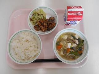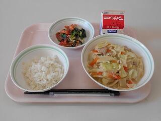 減量麦ごはん、牛乳、みそラーメン、ビタミンAサラダ