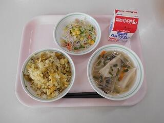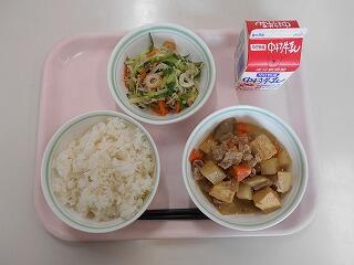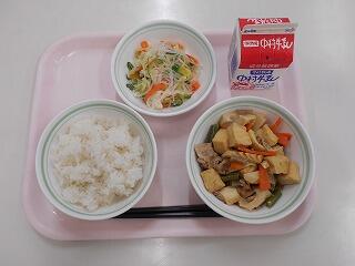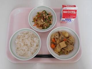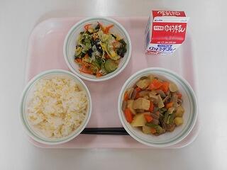 麦ごはん、牛乳、筑前煮、和風サラダ